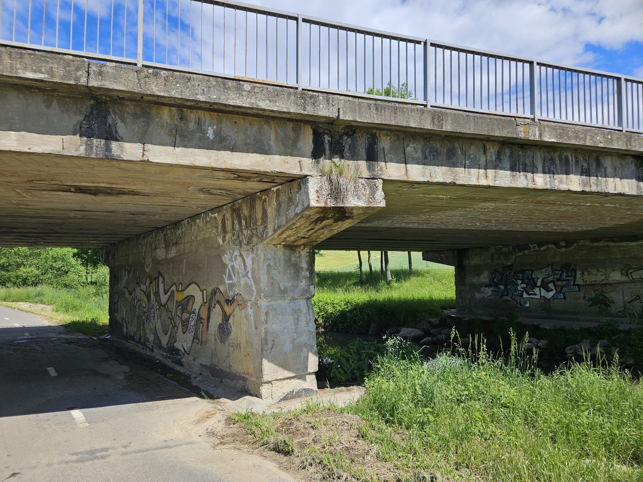V rámci zakázky byla realizována rozsáhlá diagnostika dvou mostních objektů – čtyřpolového a třípolového předpjatého mostu z nosníků typu KA. Součástí provedených prací bylo nejen podrobné sondážní šetření a vyhodnocení stavu předpínací výztuže, ale také odběr a analýza jádrových vývrtů ze spodní stavby i samotných nosníků. Dále byly provedeny sondy do vozovkových vrstev a provedena komplexní vizuální prohlídka obou mostů, jejímž cílem bylo zachytit veškeré poruchy a degradace, které mohou mít vliv na bezpečnost a životnost konstrukcí. Výstupem celé diagnostiky bylo odborné doporučení pro správce mostů, které tvoří klíčový podklad pro následné zpracování projektové dokumentace připravovaných rekonstrukcí.